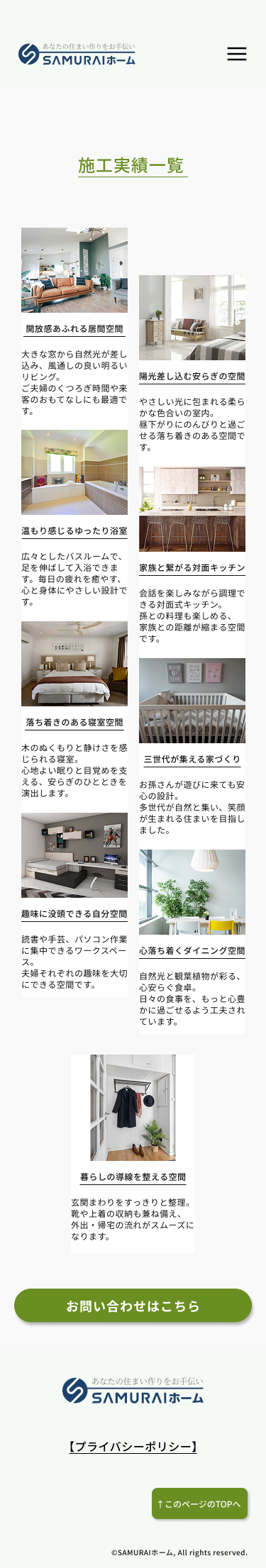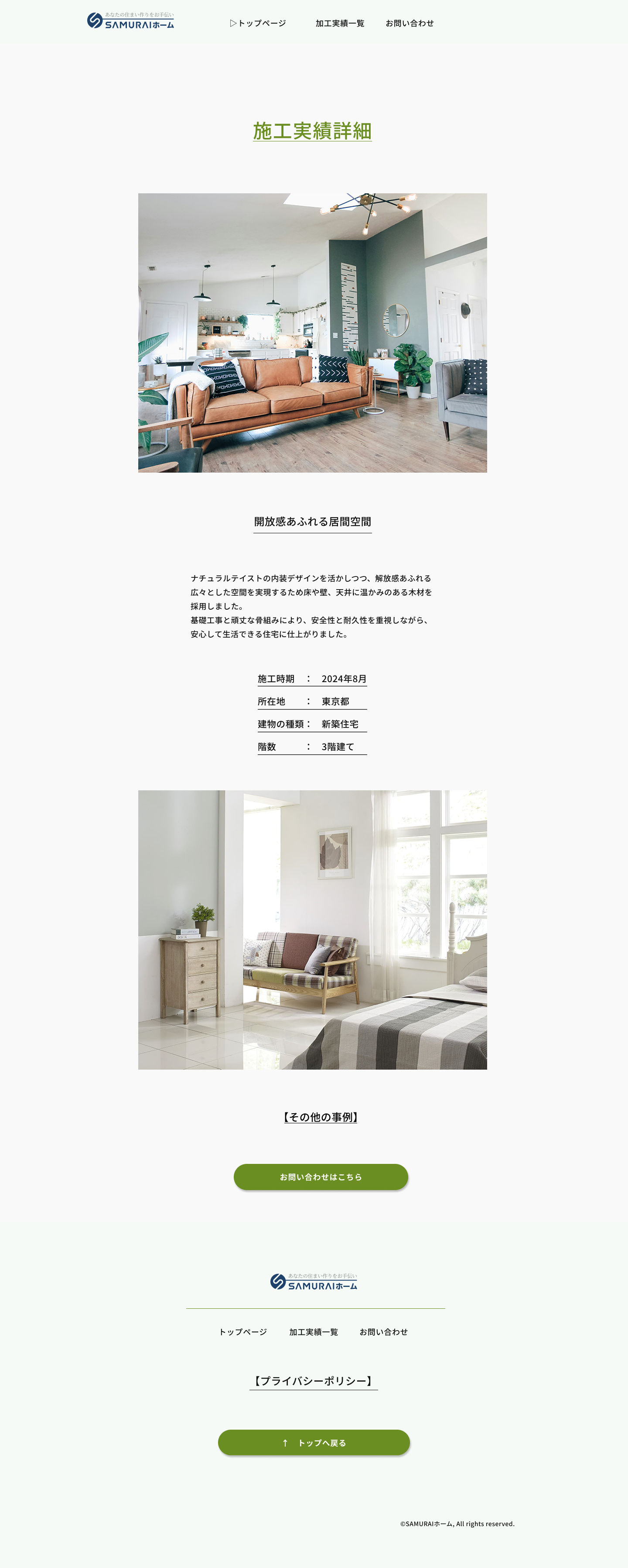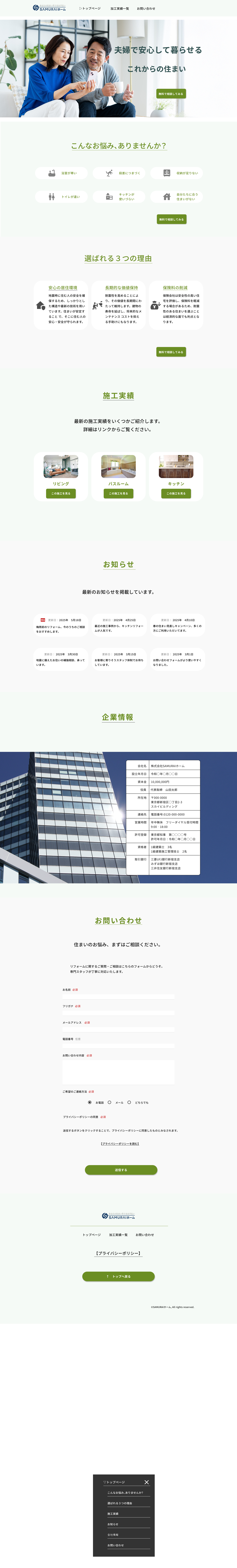 「これからの暮らしを安心して任せられる」トーンを目指し、配色・余白・タイポを調整。 施工実績(一覧/詳細)はWordPressで運用し、レスポンシブ最適化。